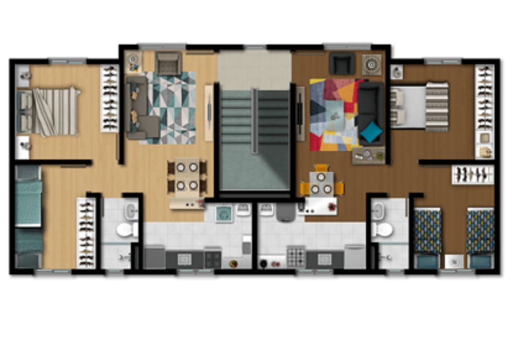 Mude de vida e more no que é seu! 60 apartamentos 02 dormitórios Somente 02 unidades por andar Ventilação Cruzada Guarita Salão de Festas 02 playgrounds Box Coberto